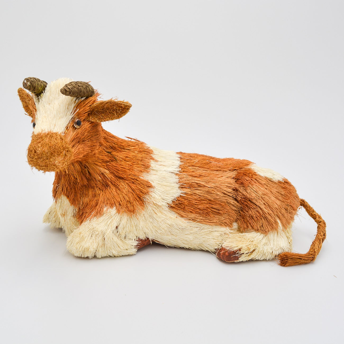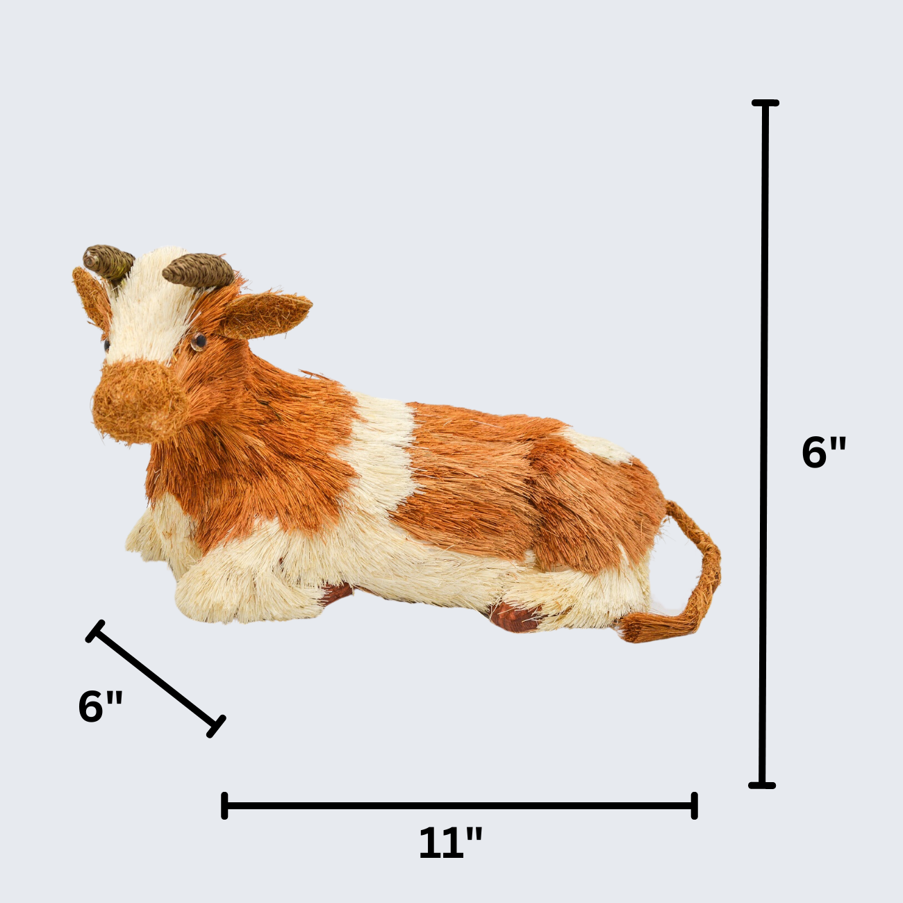 This 11" Black and White Sisal Cow is perfect for any season. Crafted from natural sisal grass, it features a resting cow in a classic brown-and-white design. This decor piece is sure to bring a touch of nature to the home.