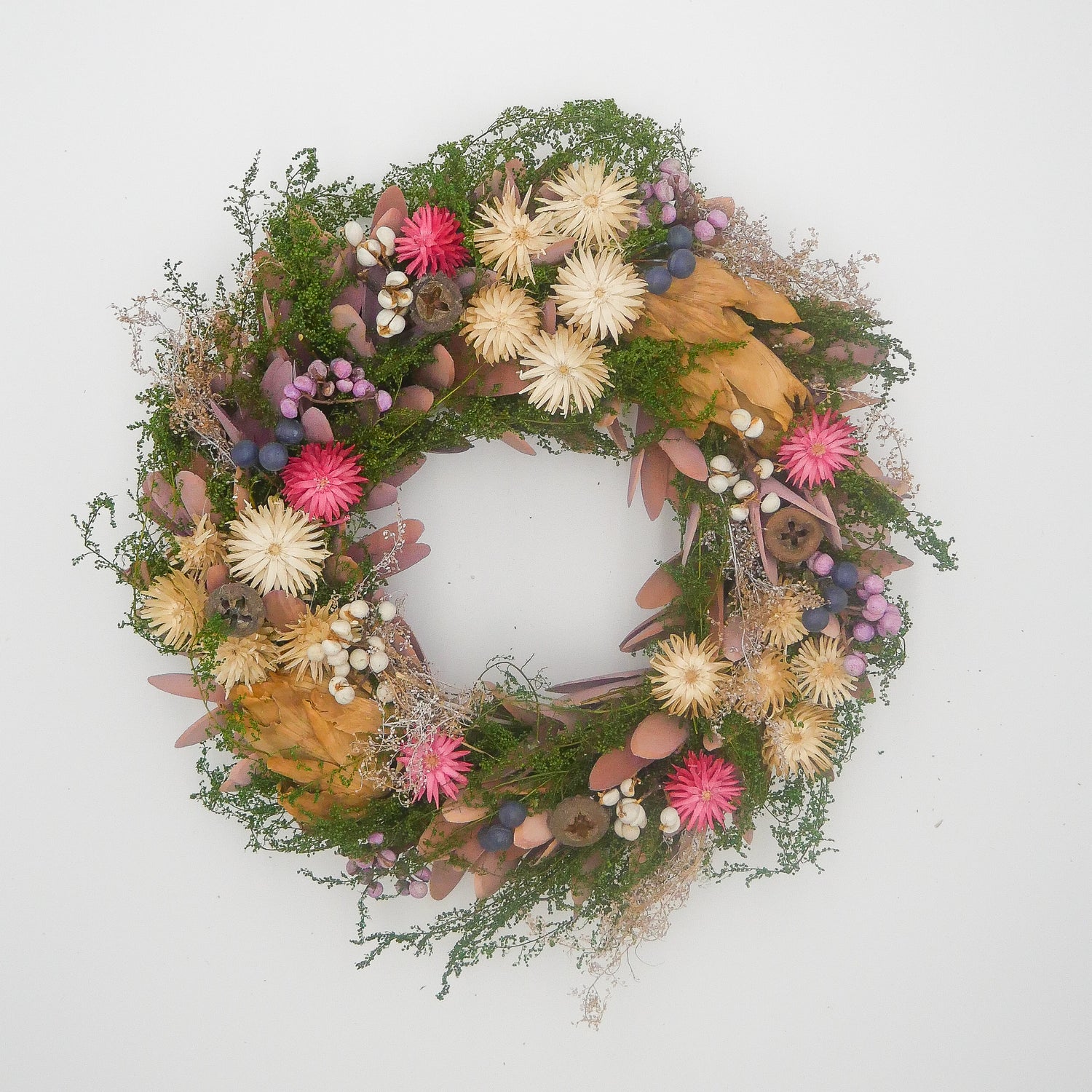 This 12" dried artichoke and straw flower wreath is a stunning addition to any home décor. Made with all natural preserved materials, on a grapevine base (not foam) it will provide a touch of spring to your space year-round. This wreath comes securely packaged in its protective box.