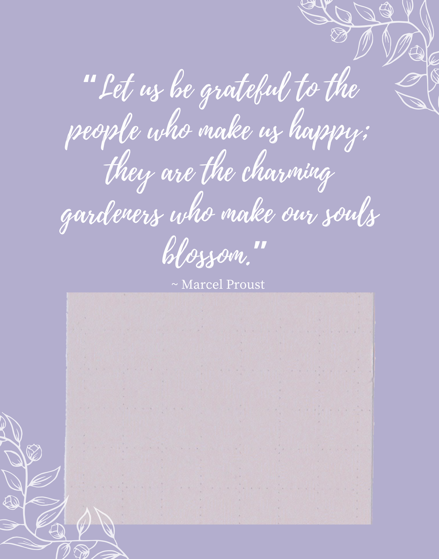*This gift also includes a beautiful card with a quote from Marcel Proust “Let us be grateful to the people who make us happy; They are the charming gardeners who make our souls blossom.” with space for your custom gift messaging, so don't forget to leave a note with your custom gift message at checkout!