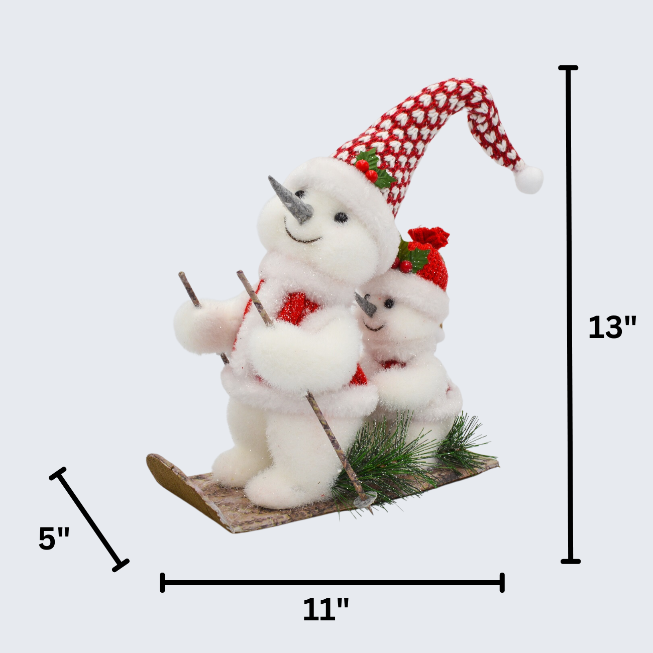 This 17.75" Sledding Snowman is a delightful winter decor piece. Crafted from birch wood in the form of a sled, it features two snowmen dressed in red hats and jackets while a touch of winter greens adds to the festive look. Perfect for bringing cozy winter vibes to any space.