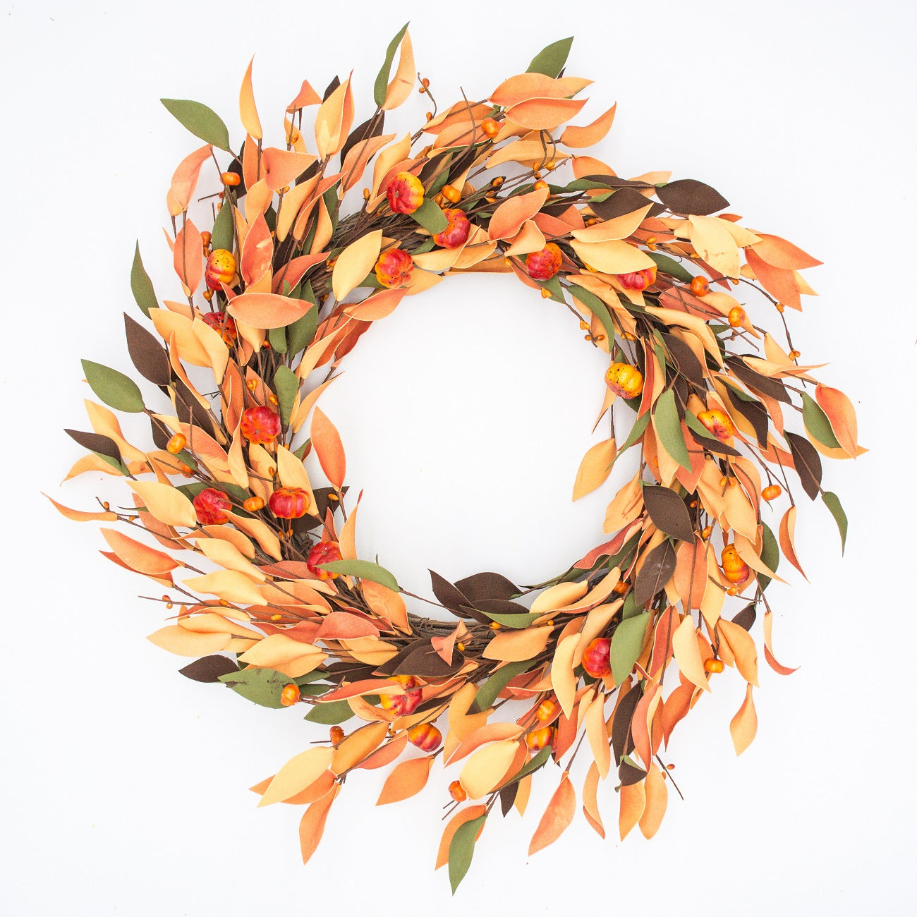 22" Autumn Beech Leaf and Pumpkin Wreath