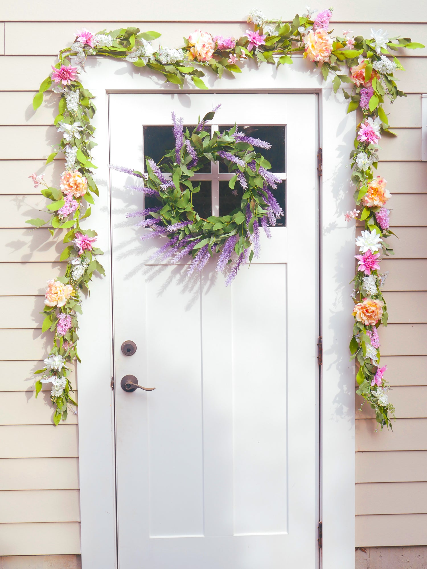 This wreath comes ready to hang with a wire hanging loop attached to the base, giving the nail, hooks and hangers a place to attach.