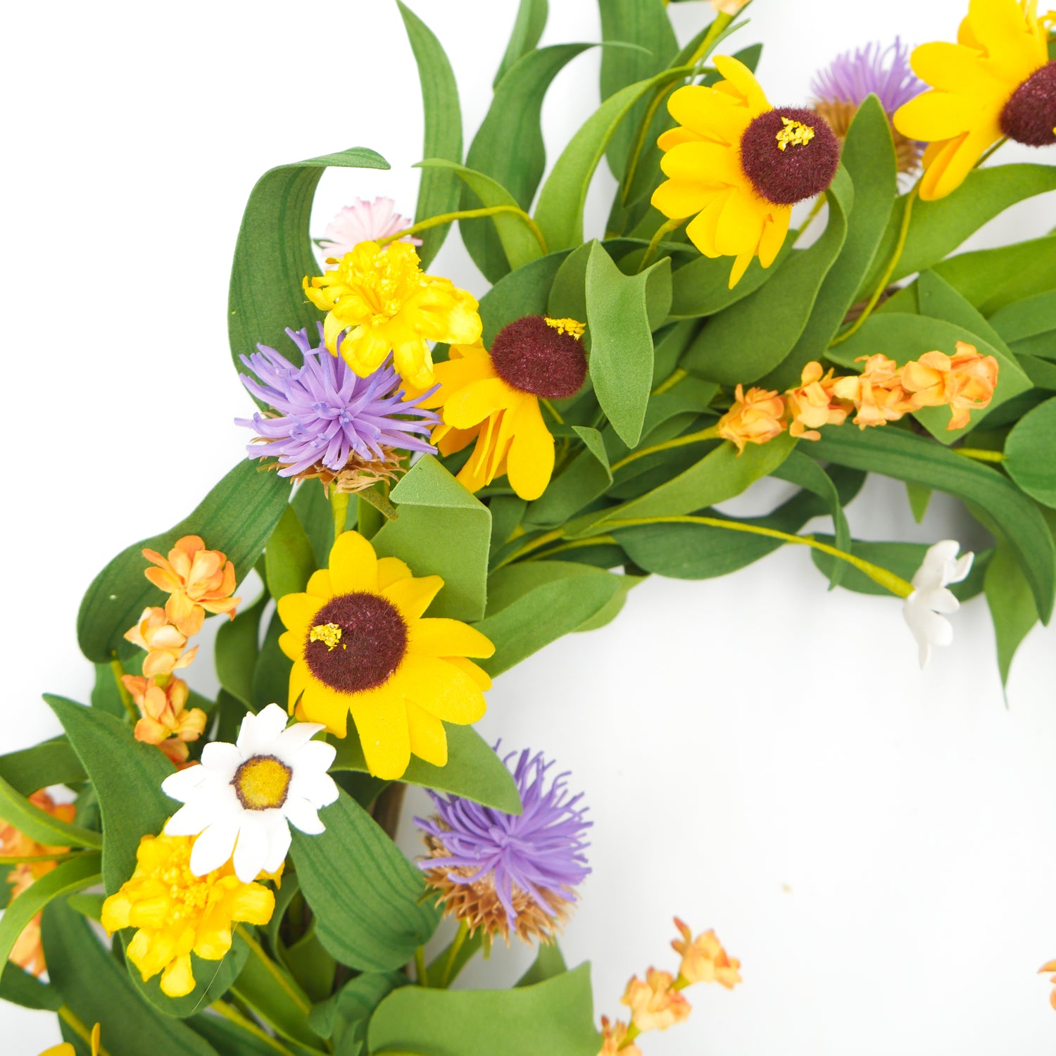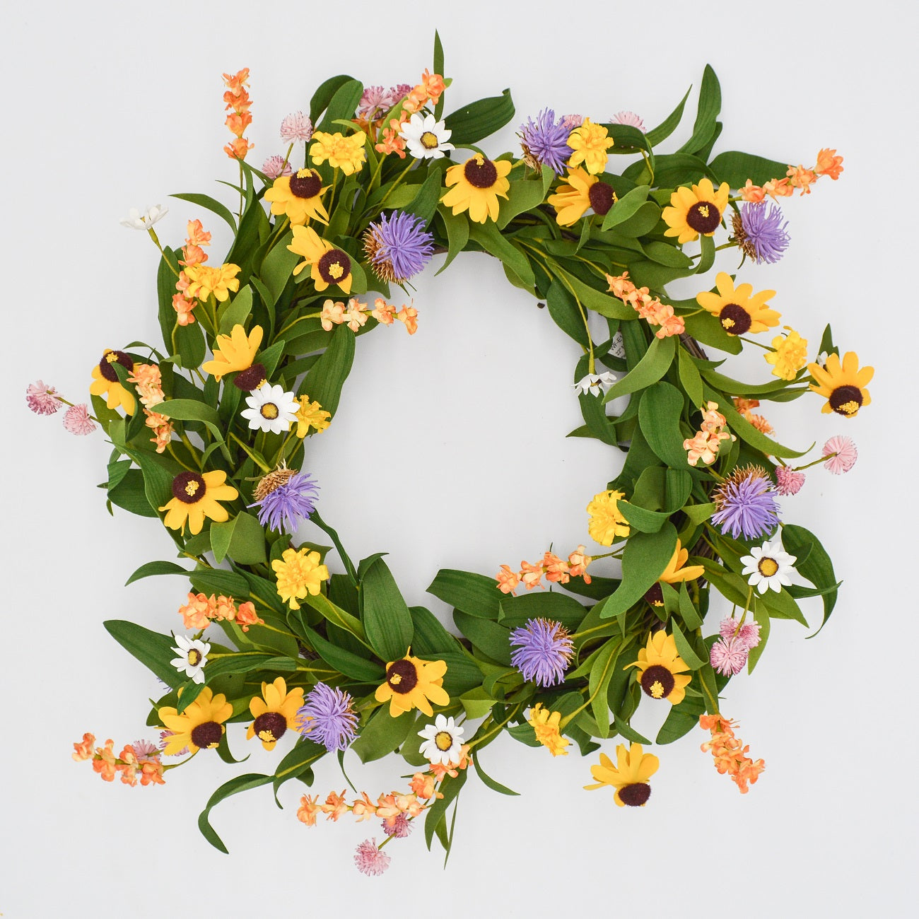 Revamp your fall decor with this 22" Mixed Larkspur and daisy wreath, perfect for adding a pop of color to your walls or doors. The perfect addition to your autumn aesthetic.