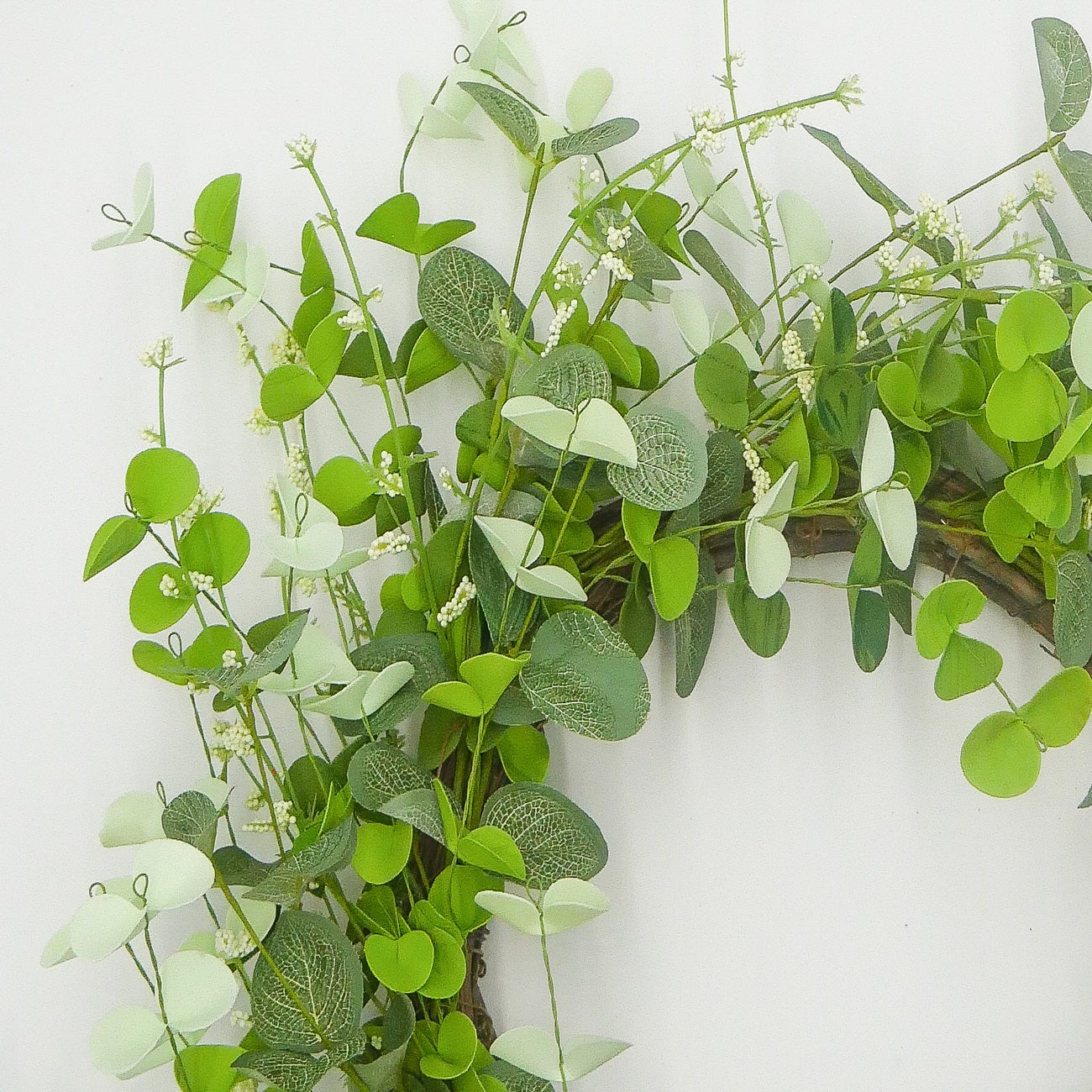 Indulge in the season with our 22" Mixed Spring Eucalyptus Wreath. Handcrafted on a sturdy grapevine base, this wreath exudes simplicity and elegance. This is the perfect wreath to take you from spring through summer, and will it add a touch of sophistication to any space. Bring the beauty of nature into your home with this luxurious wreath.