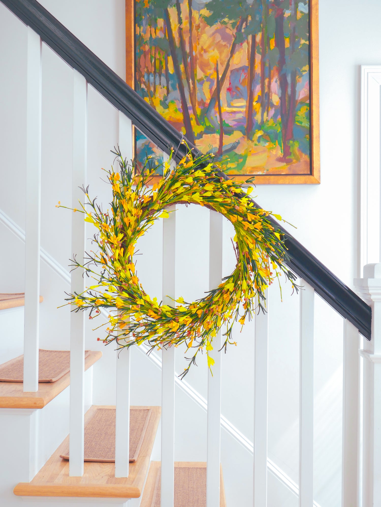 *This wreath comes ready to hang with a wire hanging loop attached to the base, giving the nail, hooks, and hangers a place to attach.