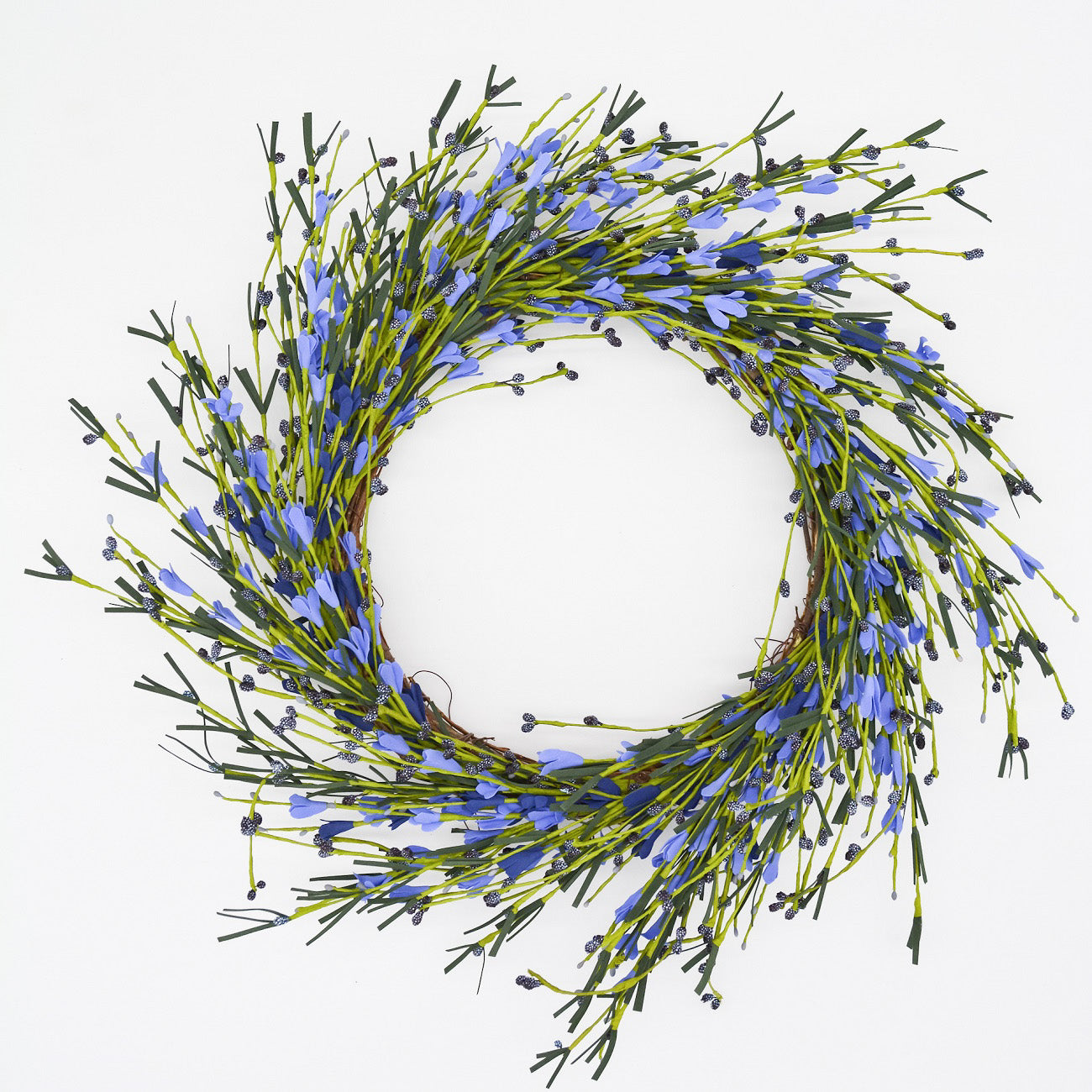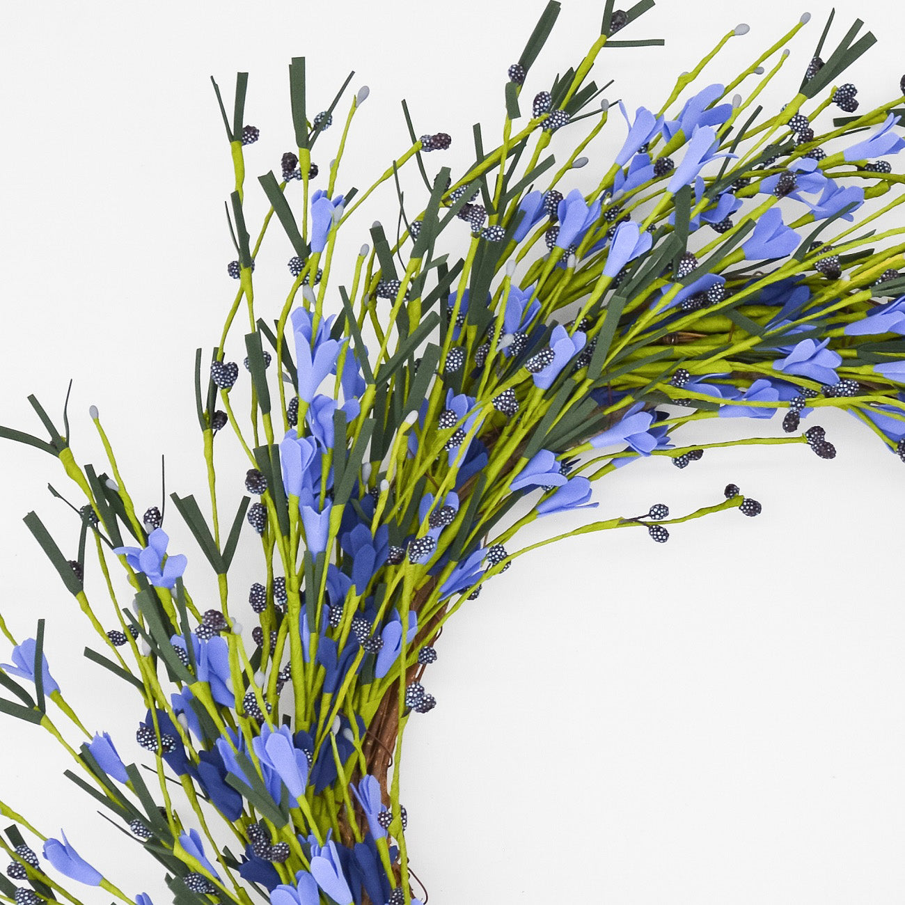 Add a pop of color to your home with our one-of-a-kind 22" Periwinkle Buttercup Wreath. With periwinkle blue flowers and buds arranged on a natural grapevine base, this gorgeous spring wreath will bring the feeling of spring into any room. Order now!