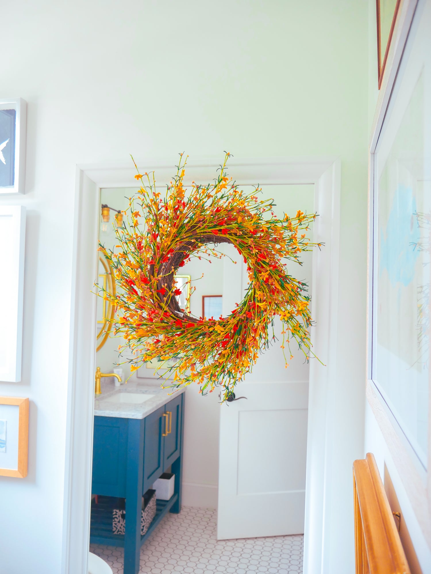 *This wreath comes ready to hang with a wire hanging loop attached to the base, giving the nail, hooks, and hangers a place to attach.