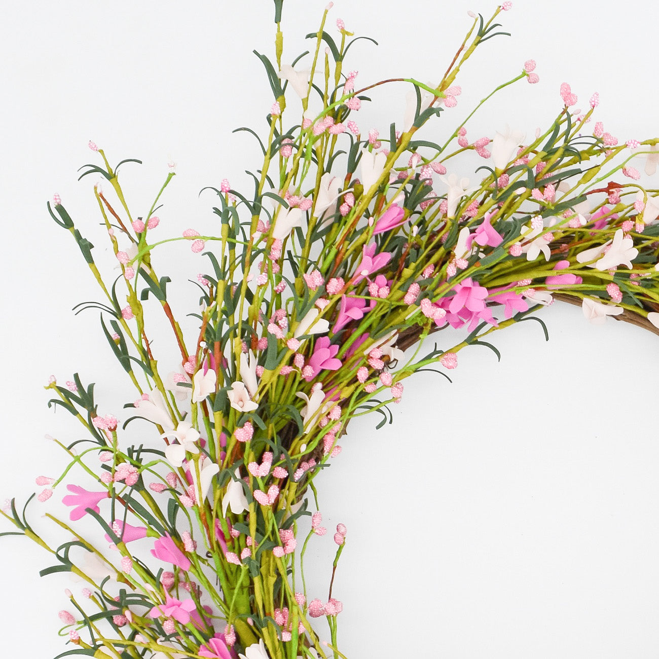 Add a pop of playful color to your spring decor with our 22" Two-Tone Pink Buttercup Wreath. With blush pink and fuchsia pink blossoms, and light pink buds, this beautifully bright wreath will make your home feel like a whimsical garden!"
