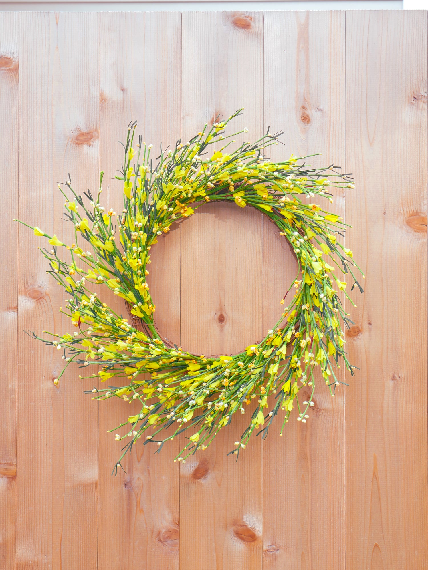 "Add a pop of sunshine to your home decor with our charming 22" Yellow and Gold Buttercup Wreath. Featuring golden yellow buds and vibrant yellow flowers on a grapevine base, this wreath will make your door or wall happy! Perfect for adding a playful touch to any space."
