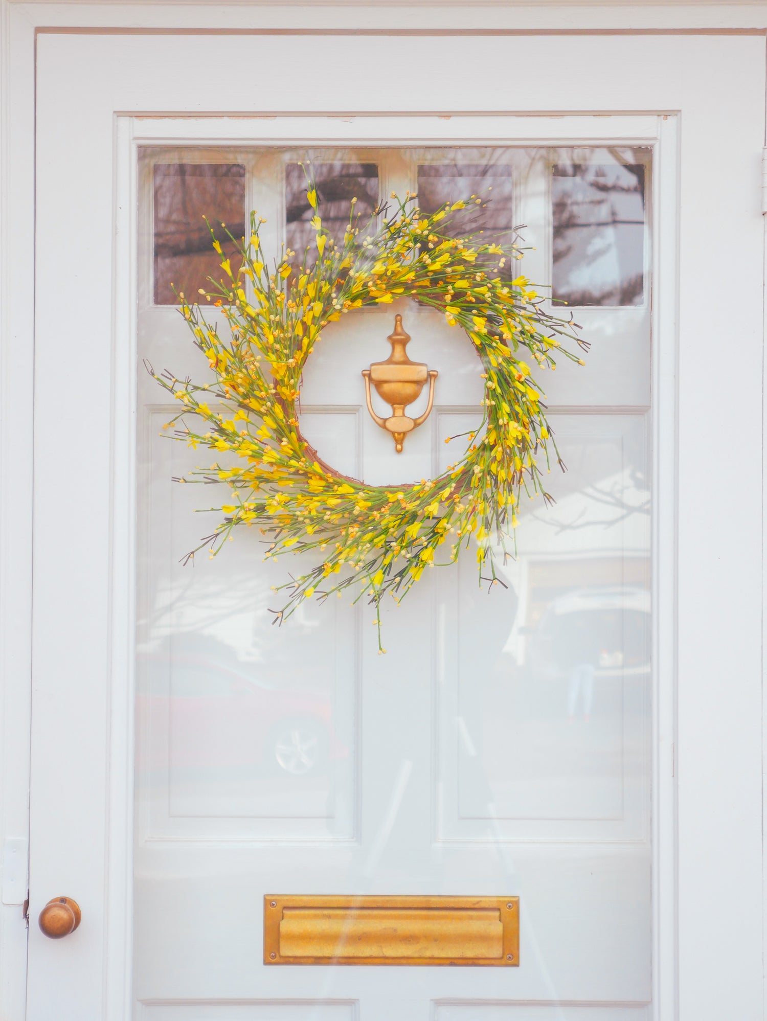 This wreath comes ready to hang with a wire hanging loop attached to the base, giving the nail, hooks and hangers a place to attach.