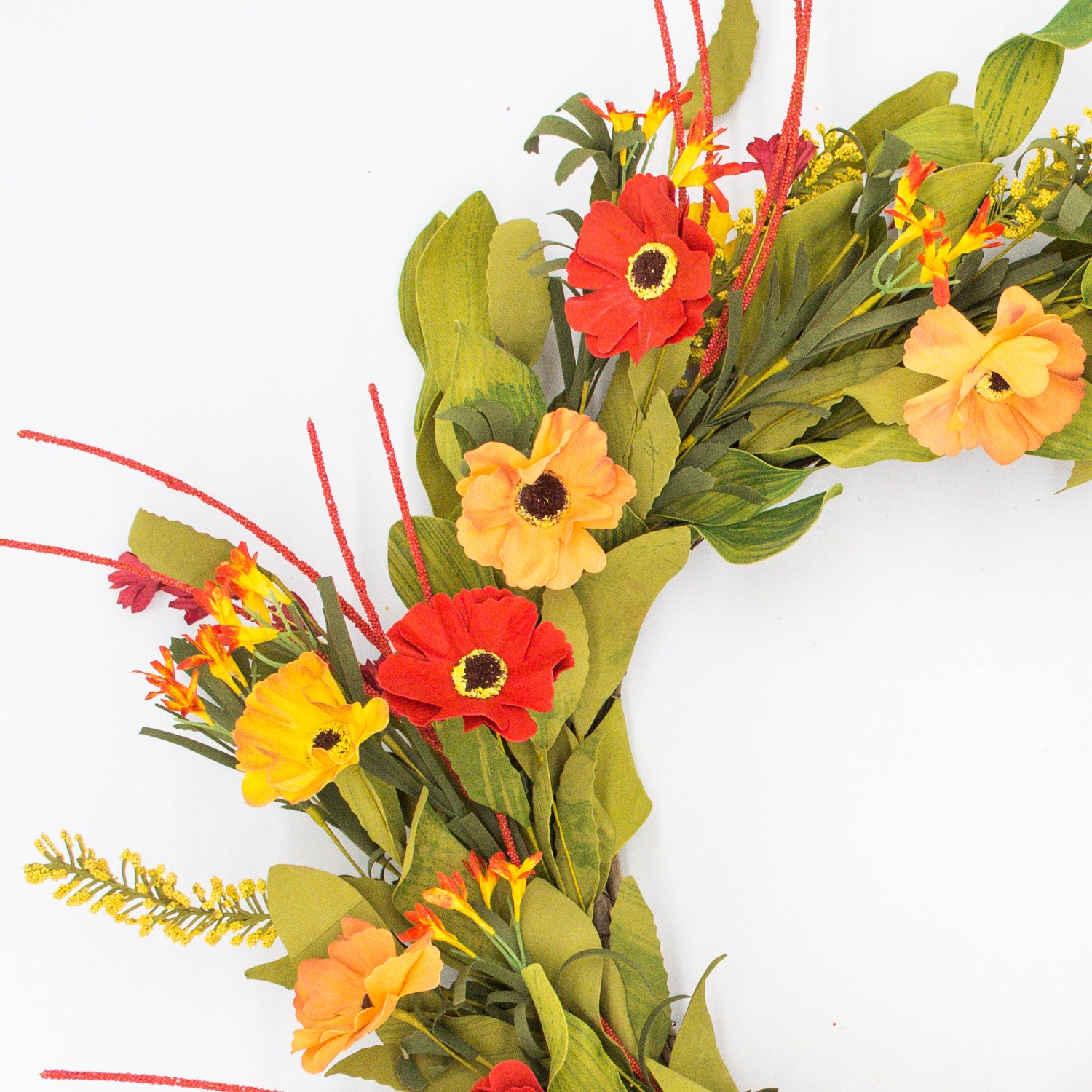 Add a pop of color to your autumn decor with our 26" Mixed Poppy Wreath! Featuring vibrant yellow and orange poppies on a durable grapevine base, this fall wreath is the perfect way to welcome the season. Bring on the cozy vibes!