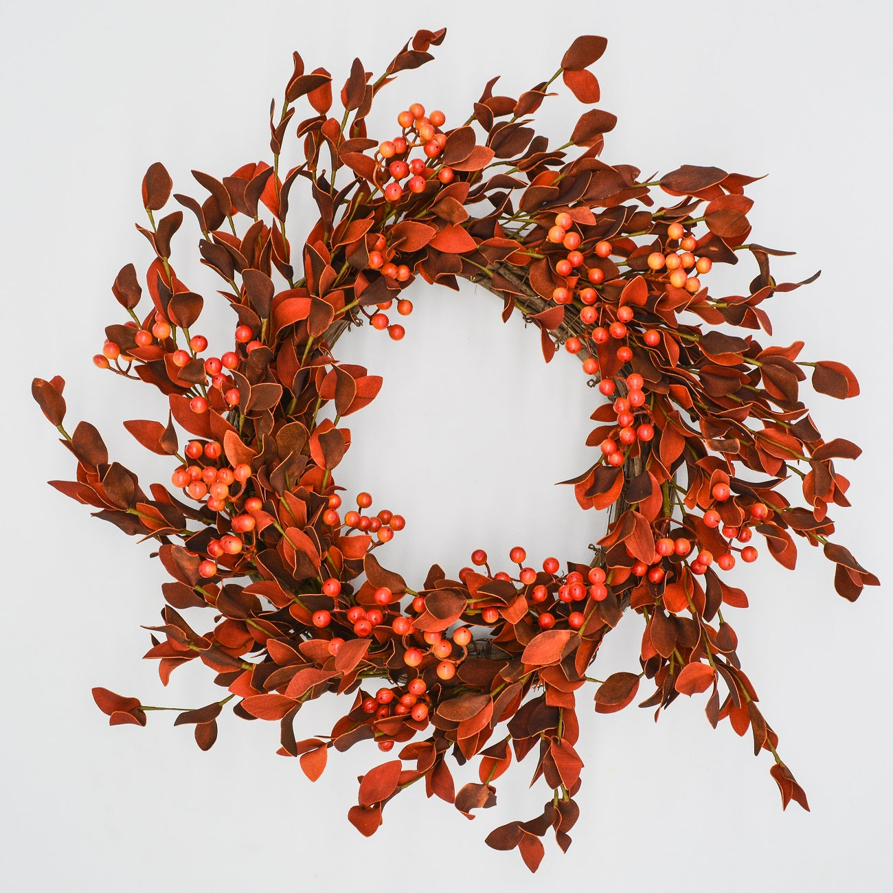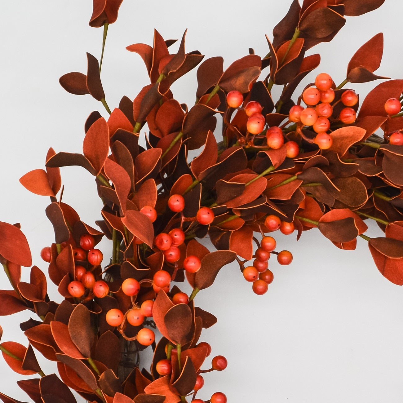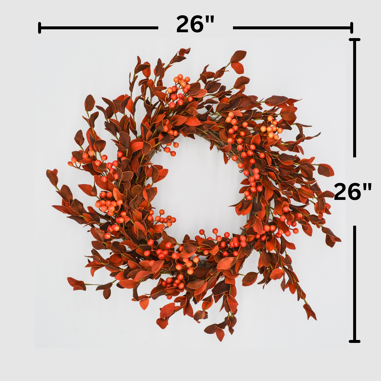 Create a stunning fall display with the 26" Rust Meadowlark, Berry Wreath. Crafted from rust meadowlark, bright red berries, and a grapevine base, it is the perfect addition to your autumn-themed décor. A bright and cheery addition to any home, the wreath adds a touch of nature-inspired beauty to any setting.