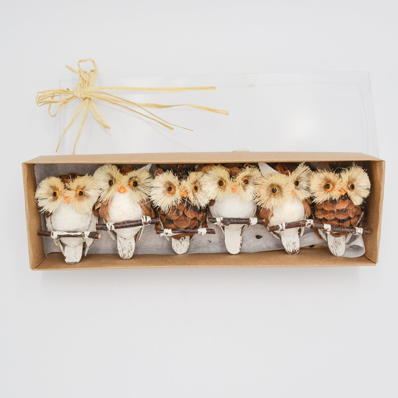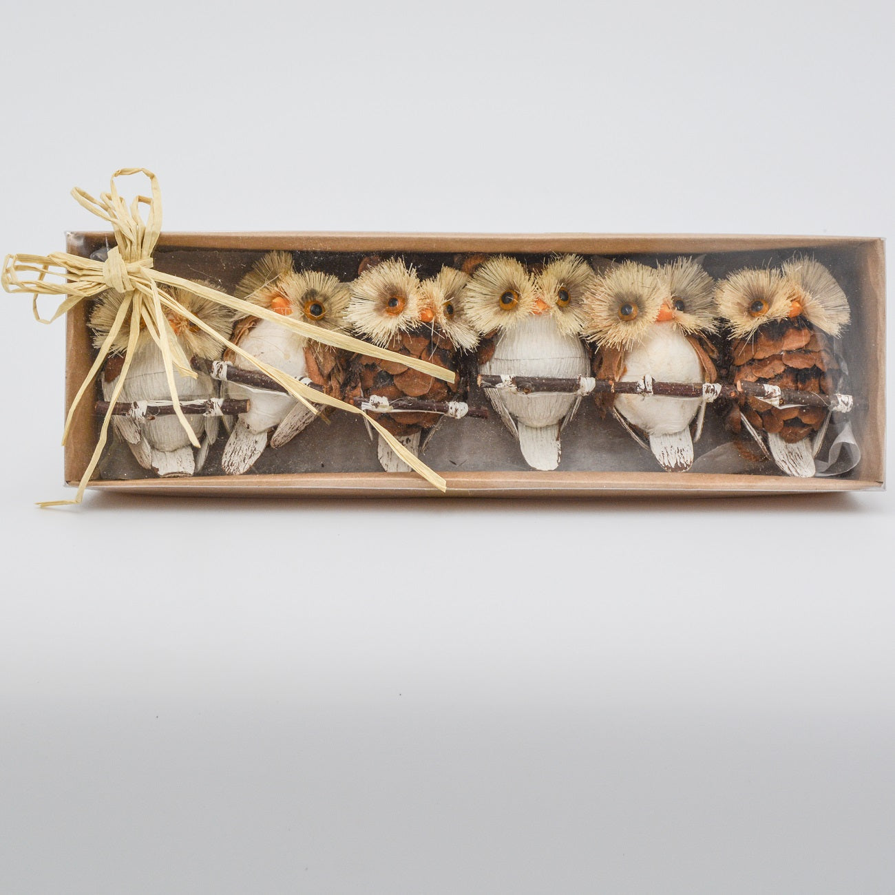 Experience festive elegance with our 3" Assorted Owl Ornaments! Made from real pinecones and sisal grass, this set of 6 charming owl ornaments will add a natural touch to your holiday decor. Perfect for those who appreciate nature inspired and unique decorations.