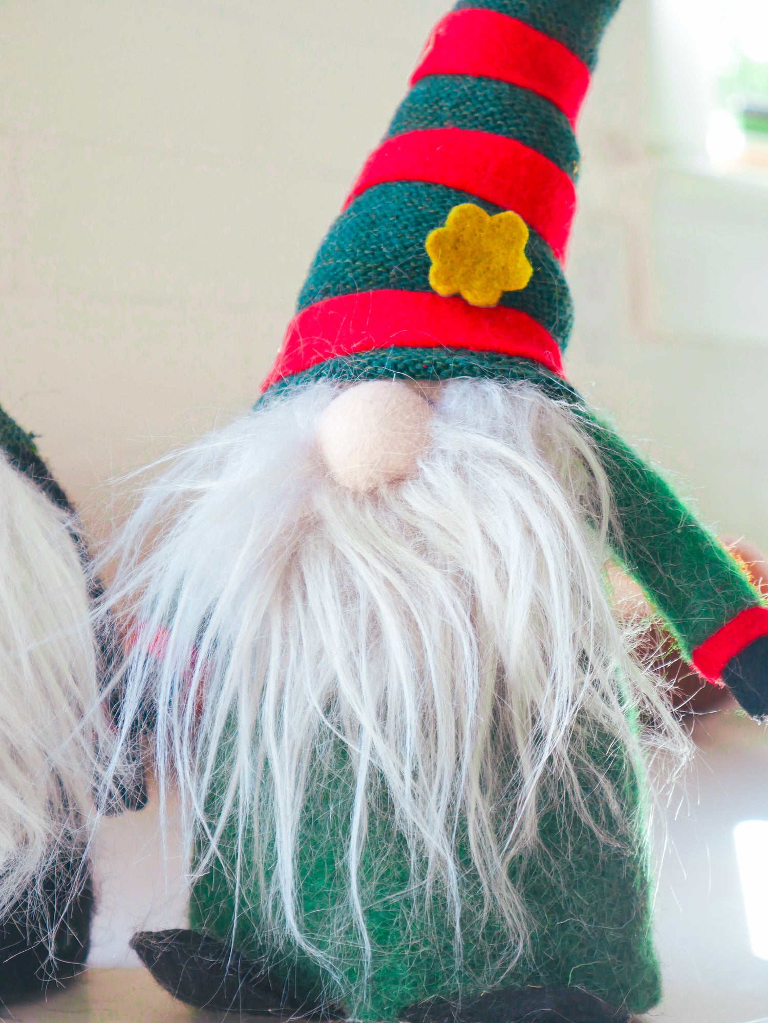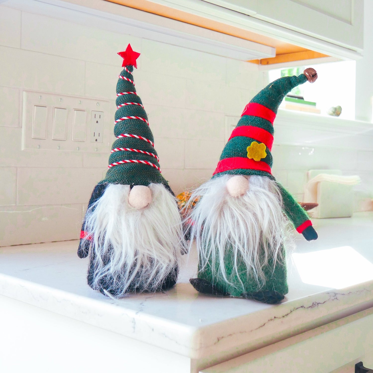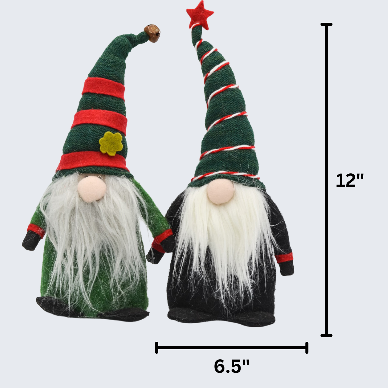 This festive pair of 12" felt gnomes in red and green make a colorful addition to your winter or holiday decor. Each gnome stands a foot tall and makes a perfect addition to any shelf, mantel, or tabletop.